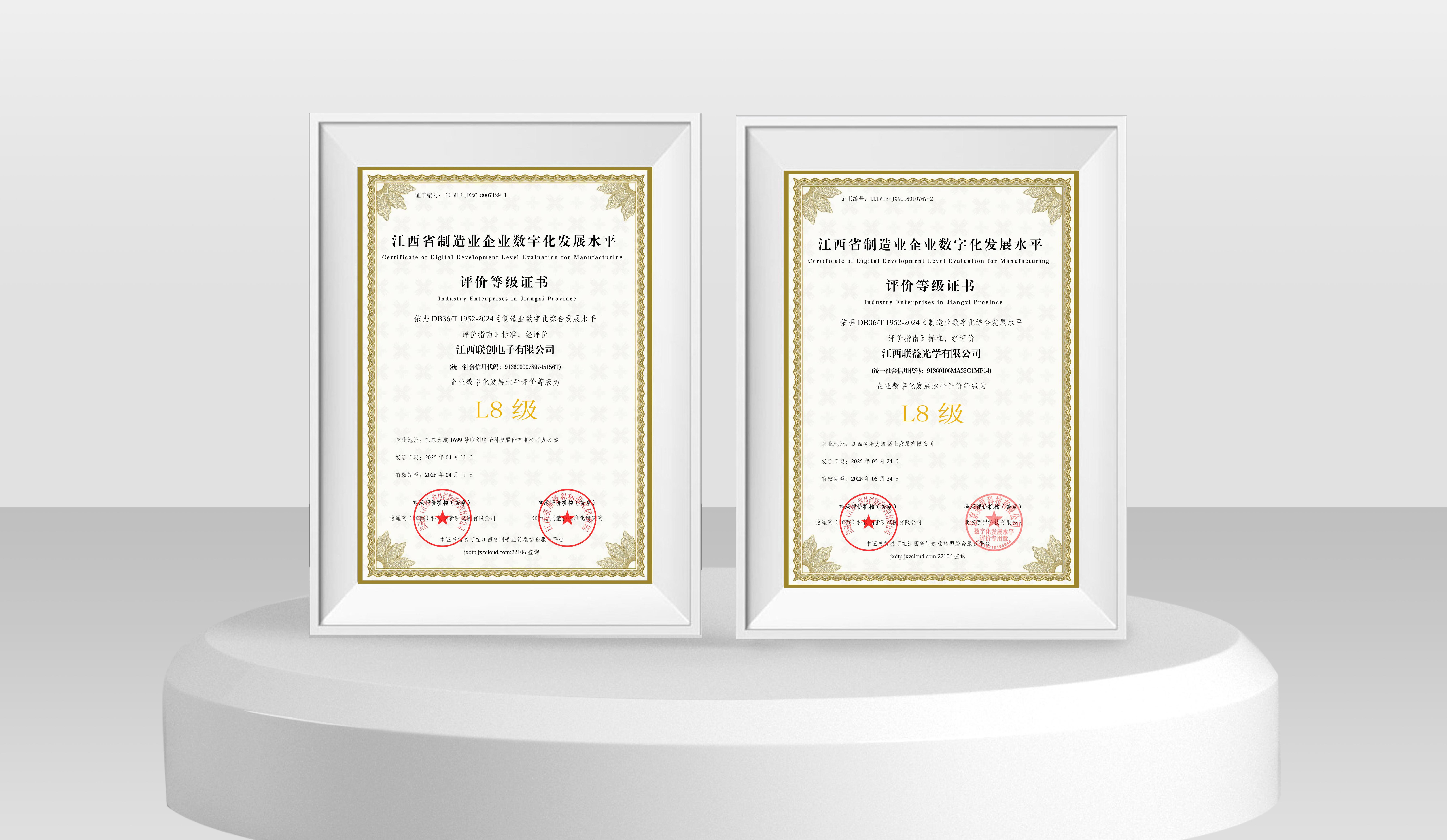 近日,乐鱼官方端网站登录入口旗下江西乐鱼官方端网站登录入口有限公司(以下简称江西联创)与江西联益光学有限公司(以下简称江西联益)凭借深度集成与创新应用能力,在江西省制造业企业数字化发展水平等级评价中双双达到L8级水平,标志着两家企业在数字化转型领域已跻身全省“集成提升阶段”最高水平,为全省制造业智能化升级树立新标杆。